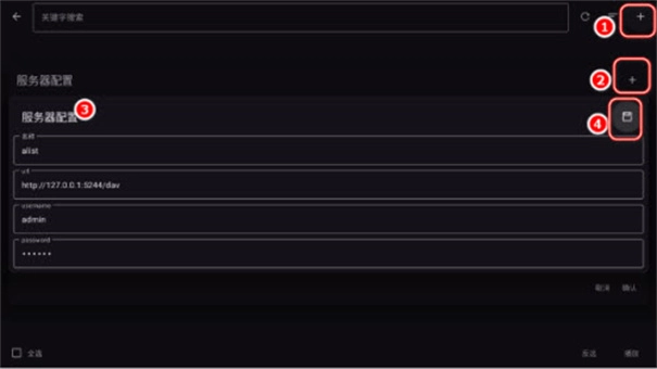 5. 添加新服务器:地址填http://127.0.0.1:5244/dav