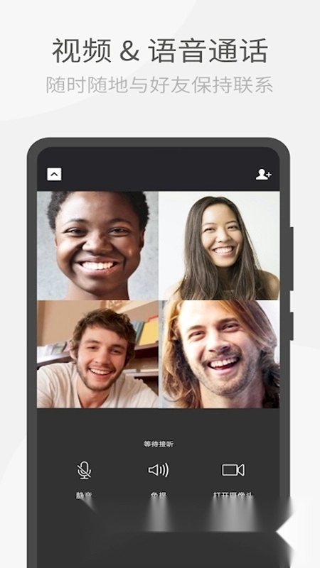 支持发送视频、语音、文字和图片,能够开展单人聊天或多人群组聊天。