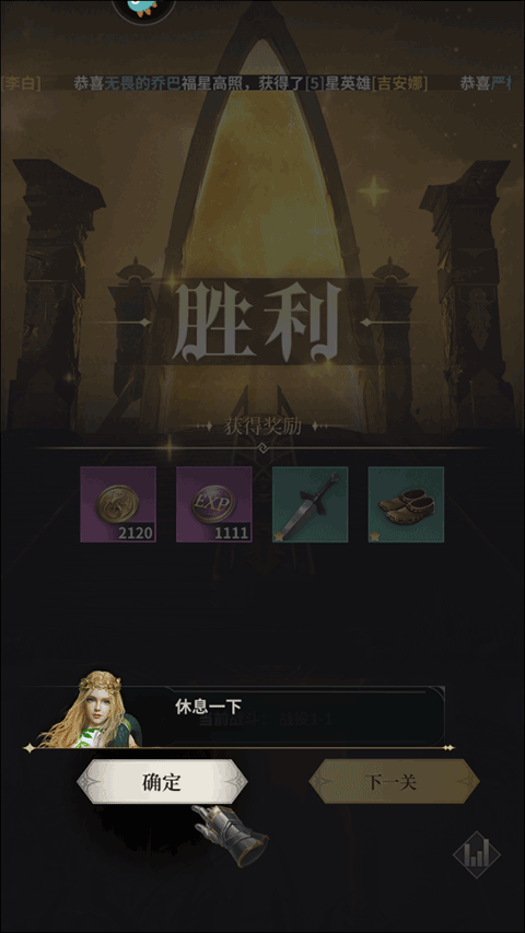 7、经过一段时间的战斗后,玩家获得了胜利,点击确定来领取吧。