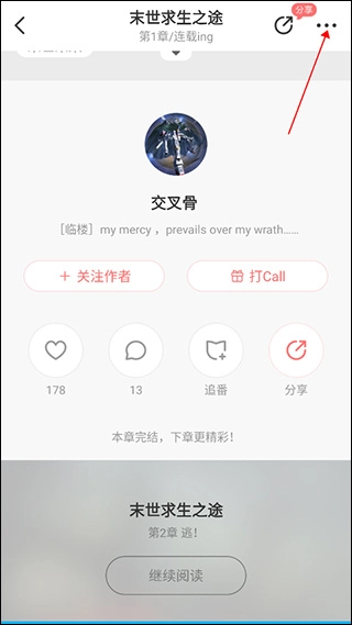 在阅读页面点击右上角“三点”图标。