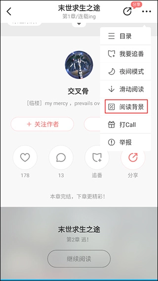 在弹出的菜单中点击“阅读背景”。