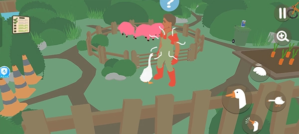 捣蛋鹅双人模式让玩家操控两只大鹅在村庄捣乱,支持联机合作完成恶作剧任务。通过触屏操作,玩家可叼取物品、设置陷阱,与场景道具互动制造混乱。双人配合是关键,一人吸引NPC注意,另一人趁机行动,比如偷园丁帽子或困住小男孩。游戏包含多个章节场景,从花园到街道充满互动元素。移动端优化让操作更流畅,实时语音功能方便玩家随时沟通策略。每完成一个捣蛋目标都能获得成就感,被追赶时的紧张逃亡也充满欢乐。