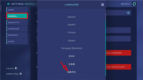 4、点击进入gteneral中的language设置语言,选择简体中文。