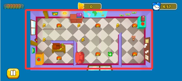 1、在地图中操控杰瑞进行移动,目标是在最短时间内收集尽可能多的奶酪并安全脱离现场,考验路径选择与节奏控制。