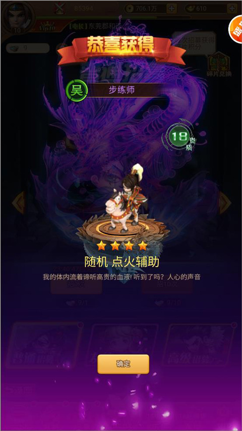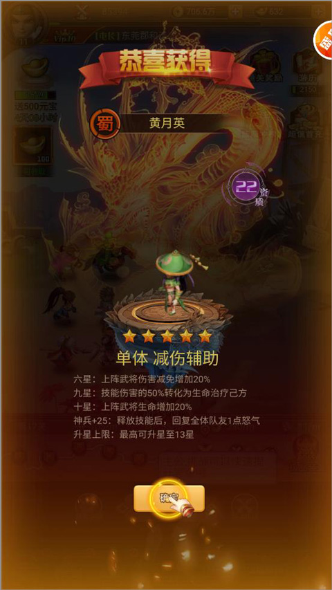 5、玩家招募后即可获得武将,还能查看武将信息;