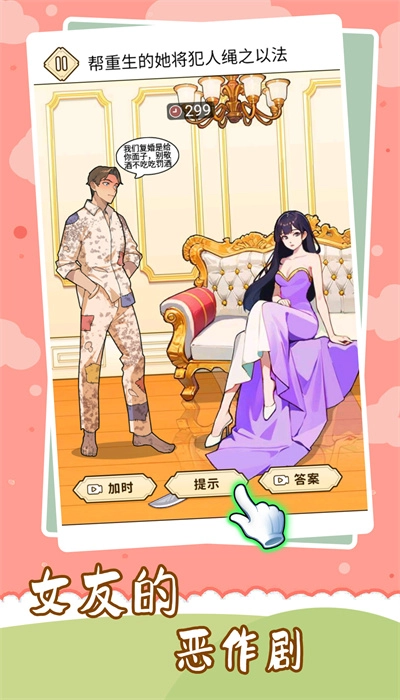女友的恶作剧安卓最新版是一款图片解谜闯关游戏,在游戏里你会扮演一位被女友捉弄的男主角,应对各种意想不到的情境和令人捧腹的梗图,凭借洞察力解开女友精心设计的谜题,慢慢揭开恶作剧背后的真相,感受其中更多的趣味。