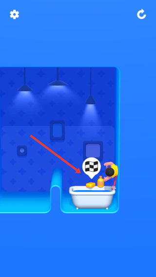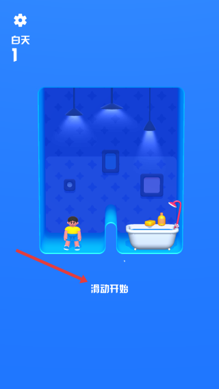 1、滑动启动:在“滑动开始”的界面上,通过滑动屏幕让角色穿过通道,进入浴缸。