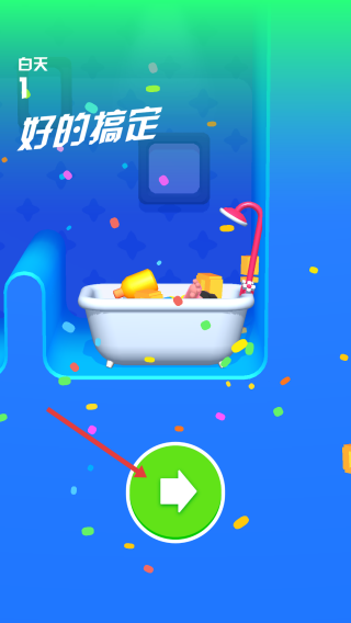 2、完成任务:控制角色走到浴缸旁边,满足“好的搞定”的通关要求。