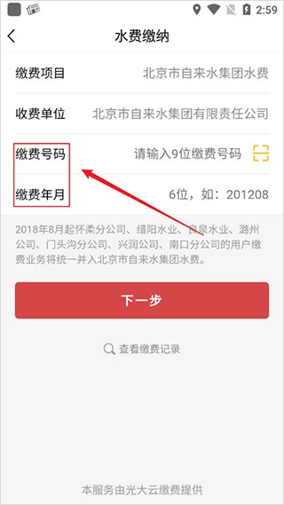 填写缴费账号和对应月份信息。