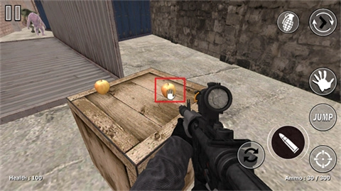 屏幕右下角红色框内的按钮是射击按钮,用于瞄准并射击前来的怪物。