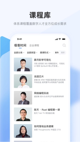 可以在极客时间企业版的首页或者课程分类页面,浏览各种各样的技术课程。