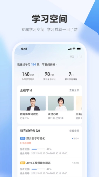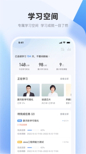 支持设置学习计划,跟踪学习进度。
