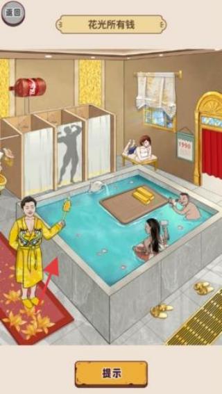 1、用完所有金币:在洗浴中心内选择消费项目(如服务、金饰)直至金币全部用完。
