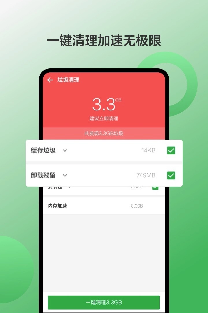 可以轻松管理自己的应用数据,还能对手机里的垃圾进行简单清理。