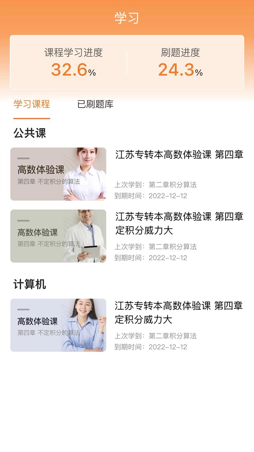 学习页面可实时呈现课程学习进度与刷题进度,让用户直观了解自身学习状况,从而便于制定更科学合理的学习计划。