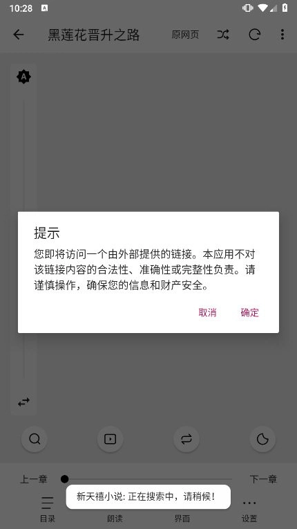 首次使用该应用时,需要授予其访问存储、网络等权限。如果拒绝授权,可能会使部分功能(例如离线缓存、书源切换)无法正常运行。