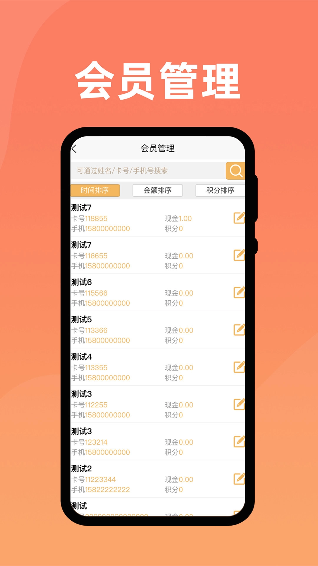 [会员管理超省心]:从注册到注销,会员档案全生命周期管理!姓名、电话、消费偏好、积分余额一键掌握,支持现金、积分、次卡等多维度消费记录,彻底告别实体卡丢失、补办的麻烦,会员信息永久云端存储,换设备也不用担心数据丢失。