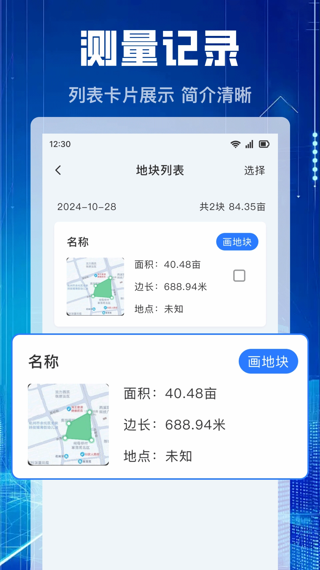 历史记录功能:可自动保存测量数据,便于对不同地块的面积进行对比。