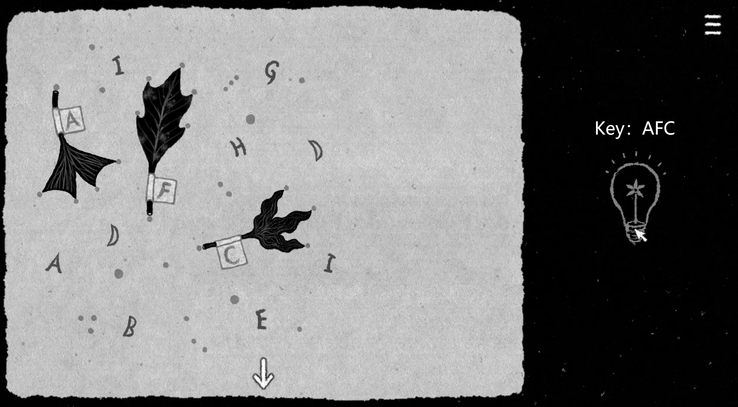 关卡1,⑥:将其放置在特定位置时,可以看到茎部分显示出字母A或F。有没有一个位置能让它全部组成字母呢?