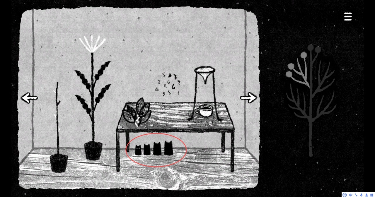 -点击桌子下面的四个猫形锥体;