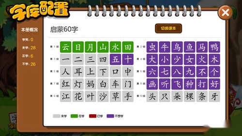 孩子学习速度很快,家长们也可以在系统设置或者右下角的花果山中,点击字库配置。