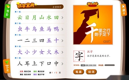 二、识字宝典,您可以借助它手动引导孩子复习。识字宝典以每6字为一组,每组都搭配有4个游戏。