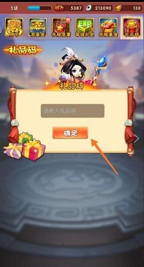 输入礼包码,点击确定。
