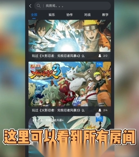 如果好友想加入房间,你可以先进入鲸云漫游的首页,找到并点击【房间入口】,在这个页面里就能看到所有的房间了。