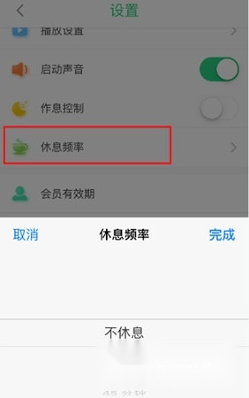 您可以在设置页面的【休息频率】选项中设置时间,该时间最长可设为1小时,最短为15分钟,您可根据自身需求进行调整。