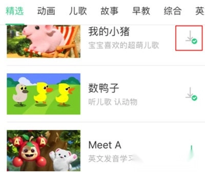 家长们只需点击儿歌动画界面旁的小箭头,就能手动启动缓存功能。