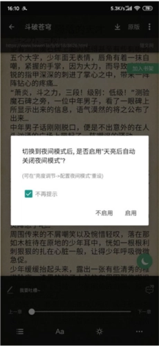 我们看到提示出现后,点击“启用”就能切换到夜间模式,用户可以在此进行相关的设置与使用。