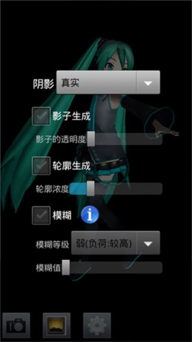 可以添加附件、舞台和背景来搭建场景,只要在界面中安装了MikuMikuEffect(MME)插件,就能应用镜头光晕、AutoLuminous(让物体发光发亮的效果)这类特效。