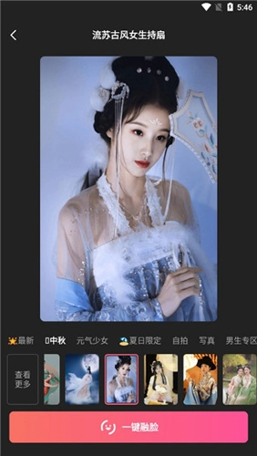 还提供了海量精美的图片融脸功能,仅需一张照片,就能让你演绎出多种风格的角色。