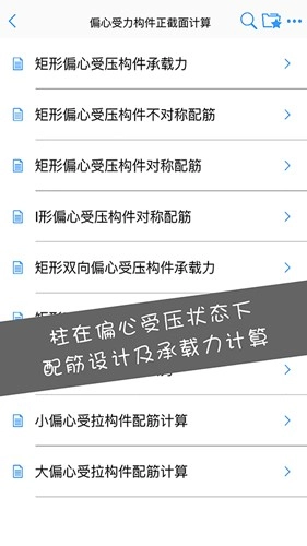 由于混凝土大师软件的产品定位各有侧重,本App里的条目和混凝土课程教材的目录大致一致,能让学习这门基础课程的学生使用起来更方便。工程人员可以依据对应的计算模型来挑选实际构件,进而开展结构配筋的计算工作。
