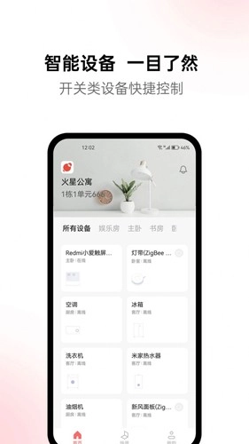 火星公寓是一款功能强大的生活服务软件,专为广大家庭打造的移动智能家居工具,旨在让用户在日常生活中体验到简单便捷的服务。软件功能全面,操作也十分简单:用户进入软件后,可在线连接家中所有相关智能设备,之后就能直接远程操控,即使身边没有遥控器也能轻松启动设备,堪称生活必备的实用神器!