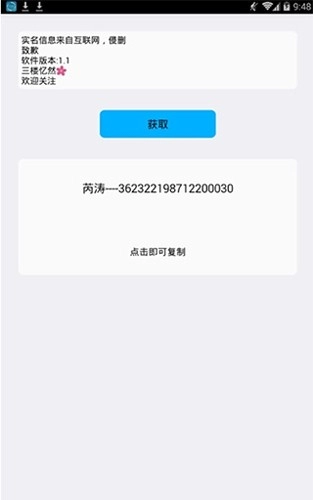 就会弹出实名认证的身份信息,之后点击复制即可。