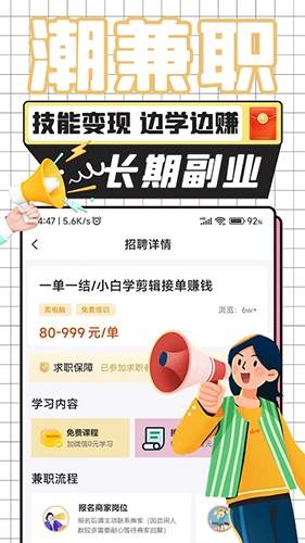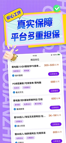 平台上发布的每一个兼职岗位都经过严格审核,为你过滤掉虚假、劣质的兼职信息!