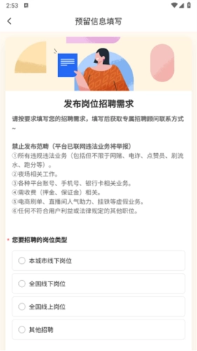 另外,你也能发布自己的岗位和需求,以便快速找到所需人才。要是遇到问题,你可以咨询客服,他们提供24小时服务,协助处理兼职过程中碰到的各类问题,为你带来更优质的体验。无论是求职者,还是有企业用工需求的人,都能获得满意的服务。通过互联网做网络兼职赚钱,能确保薪资及时发放,有需求的用户赶紧来尝试,别错过这款软件。