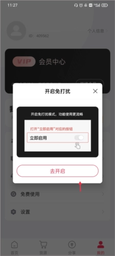 用手机号登录并绑定微信后,找到底部菜单栏的【我的】页面,然后点击“免打扰”选项。