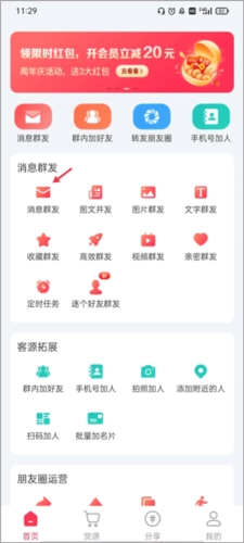 还是在【首页】这个界面,选择“消息群发”区域里的“消息群发”功能。
