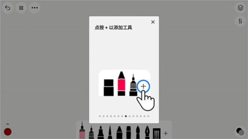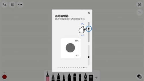 在图层按钮的下方,有一个画笔编辑器,通过它可以调整现有笔刷的不透明度和大小。