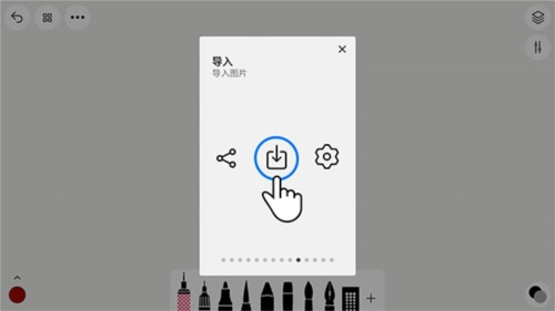 当需要导入图片进行创作时,先点击左上角的三个点,此时会弹出包含图片图标的选项。点击该图标后会跳转至设备管理器,在其中选择一张图片并点击,系统便会自动完成导入操作。稍作等待,图片就会出现在图层中。不过操作还未结束,我们可以通过滑动屏幕来调整图片的位置,待位置确认无误后,点击右上角的勾即可完成整个流程。