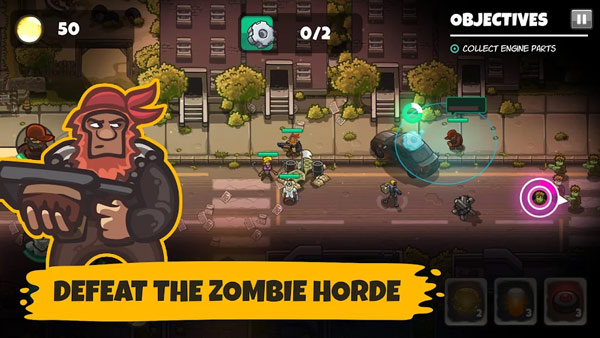 3、消灭所有僵尸,为了在僵尸众多的世界中生存,你必须使用策略并参与到技巧的战斗中,让你能够在末日世界生存。