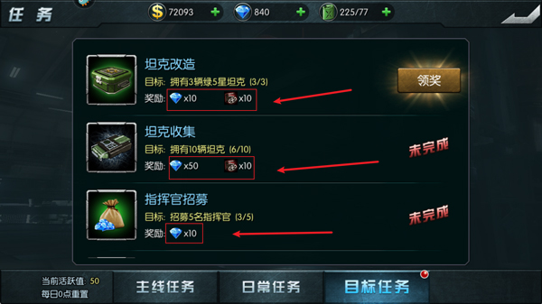 3、通过完成目标任务也可以获得大量钻石(需要完成指定目标或者任务)