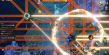 还有就是极为独特的“镜湖飞音”关卡;常规的副本,大伙都是在3D视角下闪转腾挪跟BOSS展开激烈交锋,但“镜湖飞音”可不一样。在副本第二阶段,游戏画面会直接转变为俯视角,玩家的技能及攻击方式都会转变为“弹幕射击”。