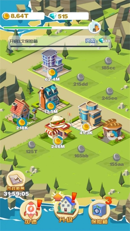 2、解锁更多的游戏挑战,解锁更多的设施,创造就业机会。
