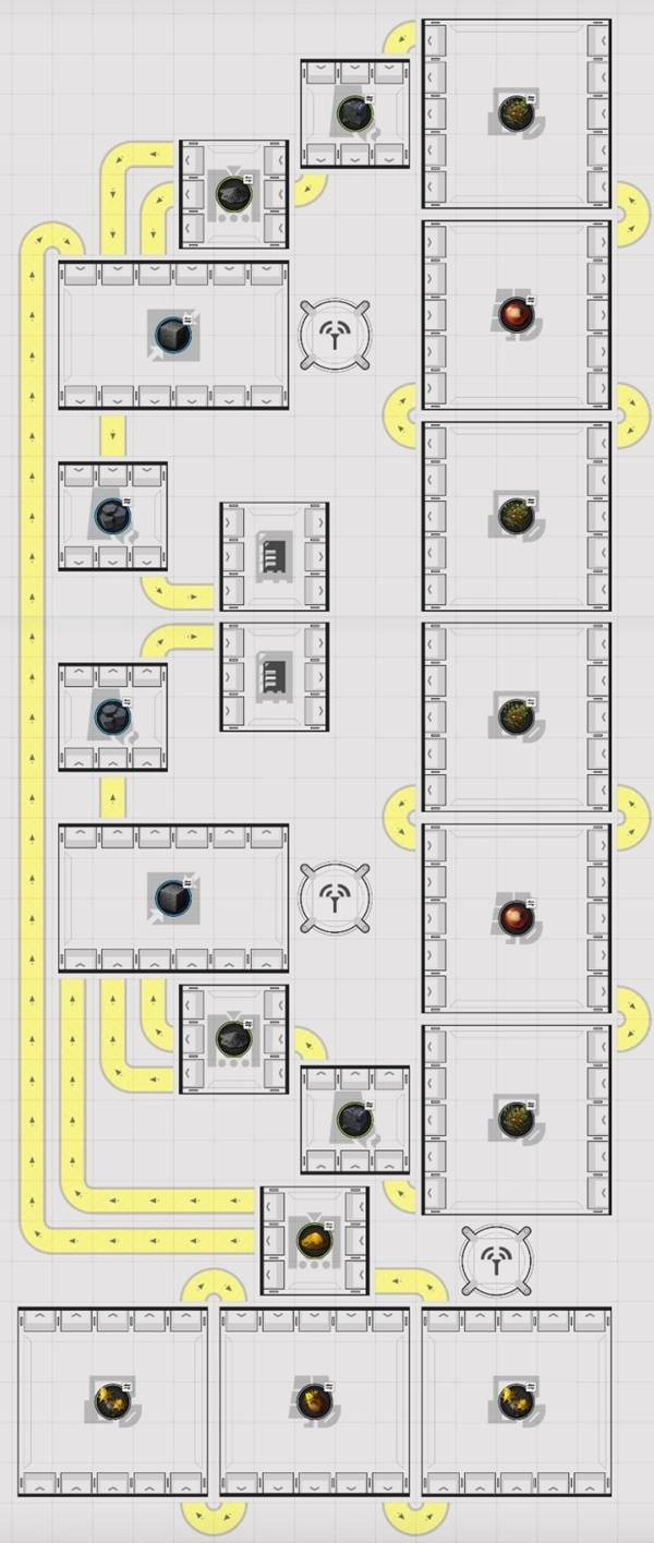 使用的设施包括:2台研磨机、6台种植机、3台采种机、2个协议储存箱、3台粉碎机、4台精炼炉、3个供电桩以及传送带。