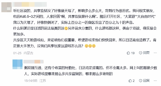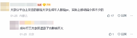 还有玩家针对网络上所谓的游戏凉了的讨论,认为是小部分玩家发出了大部分的声音,称或许移动端充斥着大量未参与社区讨论的低龄用户。