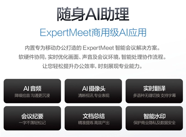 配合高清摄像头、内置双麦克风与六维空间扬声器(获得杜比音效认证),无论用户身处何地,都能打造如同面对面般高质量、高效率的远程协作体验,显著提升团队沟通与决策效率。