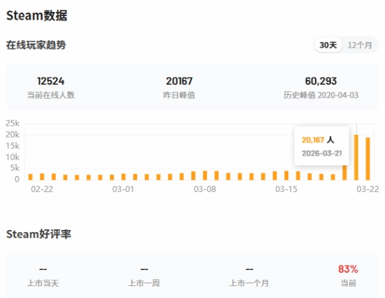 尽管这一数字与首发时 6 万人的巅峰在线量仍有差距,但相较于折扣活动开启前日均 1000 人的在线水平,已是质的飞跃,涨幅达到 20 倍。
